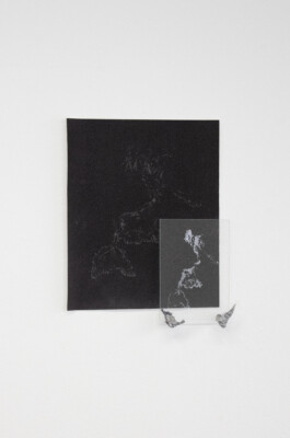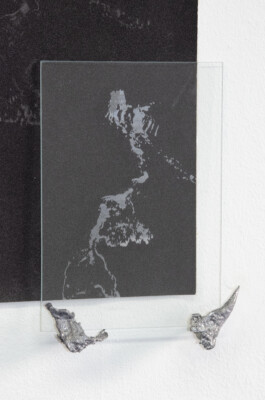 Œuvre composite, verre gravé, papier de verre gratté, plomb